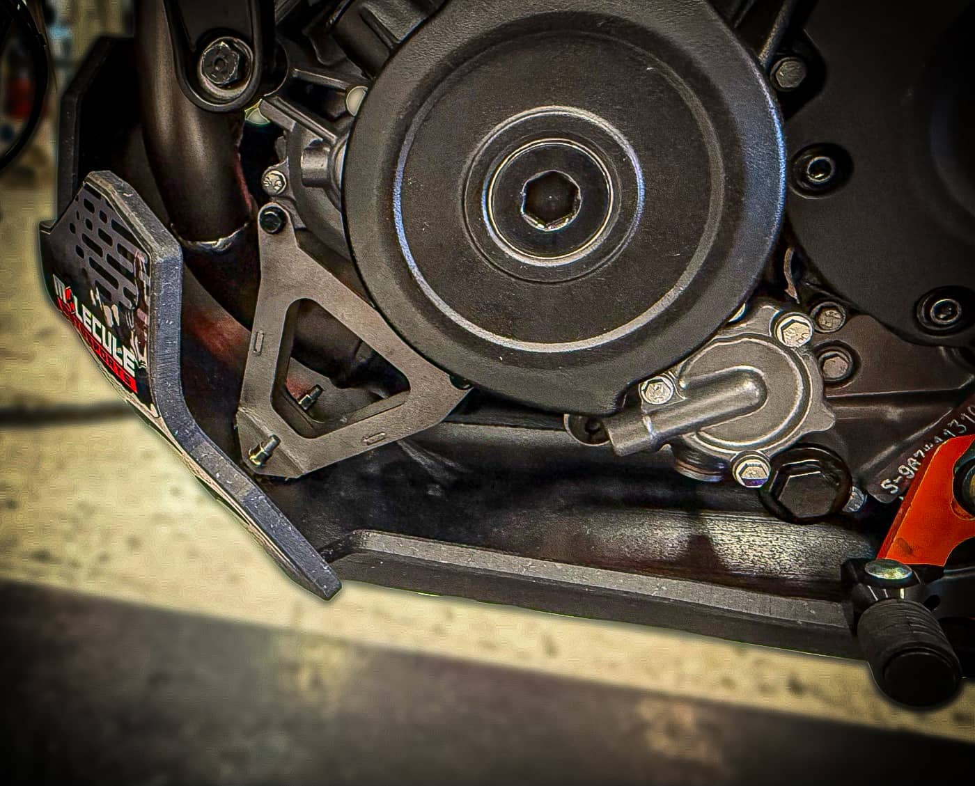 The KTM 390 Adventure Skid Plate is the first of its kind crafted from 3/8″ (9.5 mm) thick billet UHMW — a material with 10× the wear resistance of carbon steel and outstanding sound-dampening properties. Rocks and debris hit with a muted thud, not a deafening clang.