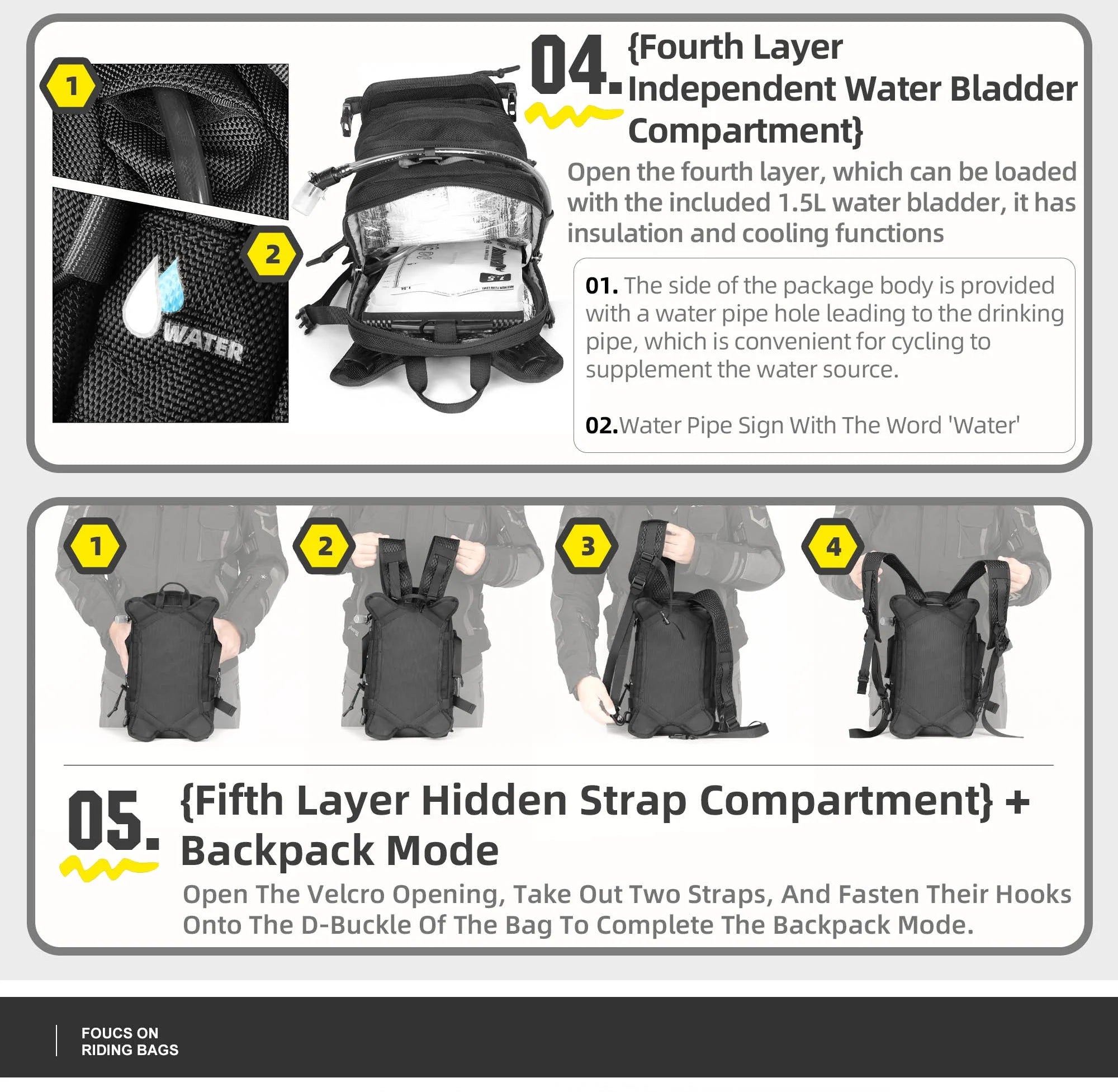 RhinoWalk 9L Motorcycle Tank Bag – Hydration Bladder, Waterproof Gear