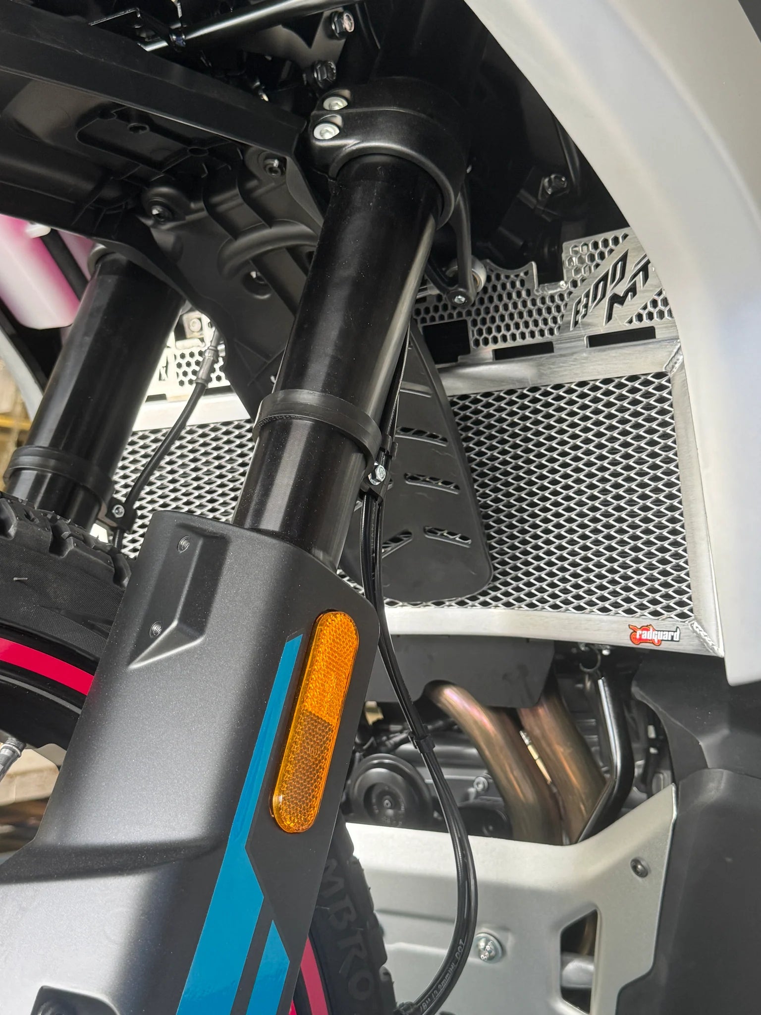 The rigid frame of the Rad Guard holds the expanded mesh in place so that hard hits by stones and any other road debris will save your core from certain damage. This rigid frame also acts as a brace to prevent the radiator core from being squashed if a side impact occurs. For example, the bike falls off the stand.
